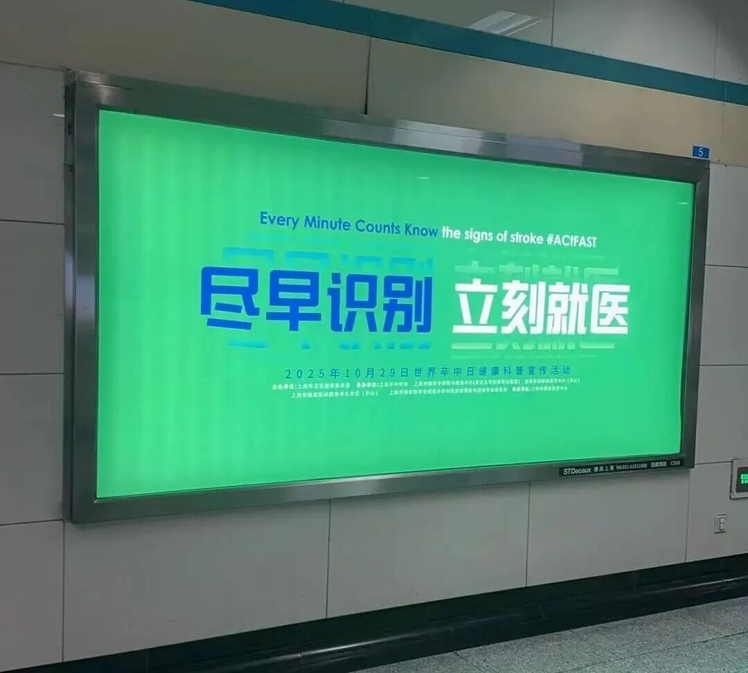 为了进一步提升市民卒中防治意识,在上海市卫生健康委指导下,华山医院作为上海市脑卒中预防与救治中心,牵头在上海市主要交通枢纽开展系列科普活动。自10月29日起至11月底,上海市民穿梭于申城时,将会与重要的健康提醒不期而遇。本次主题宣传将密集覆盖上海火车站、虹桥火车站、虹桥机场、浦东国际机场等四大交通枢纽,通过场内的巨幅电子屏幕与宣传展架,向每一位过往的旅客传递“卒中识别”的关键信号。