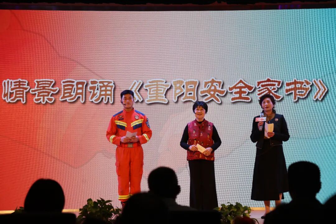 “电气线路常检查,老旧破损及时换。一个插座莫多用,离家断电保平安。孩子啊,我们都记下了……”活动现场,情景朗诵《重阳安全家书》温情上演。节目由青年消防员、文明家庭和“五老”代表共同演绎,将家庭消防安全知识化为一句句温情叮咛。“比如楼道里不能停放电瓶车,充电也不能在家里充……这些知识对独居老年人来说太需要了!”表演者张瑞华说。