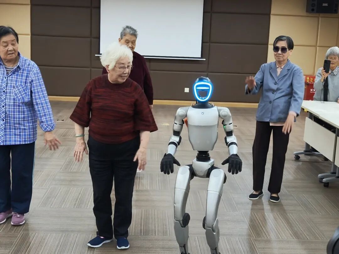 活动伊始,机器人“小暖”凭借其灵活舞步与童趣语音迅速成为全场焦点。它不仅主动表演节目,更热情邀请老人们一同参与互动,现场氛围温馨而活跃。