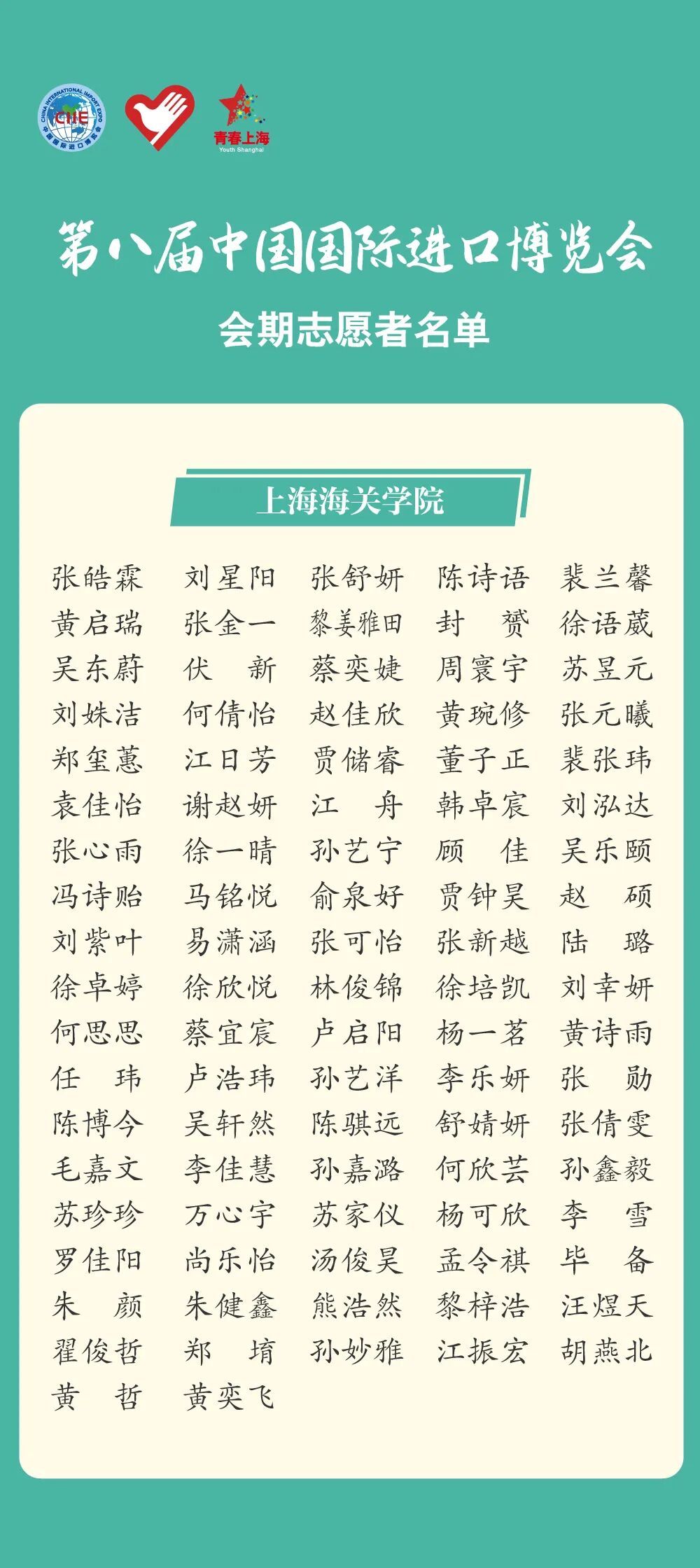 10月29日,第八届中国国际进口博览会志愿者上岗宣誓仪式暨志愿者临时党、团组织成立仪式,在上海展览中心友谊会堂举行。3865名进博“小叶子”在嘹亮的青春誓言中宣誓上岗。志愿者全名单在此,看看有你认识的吗?