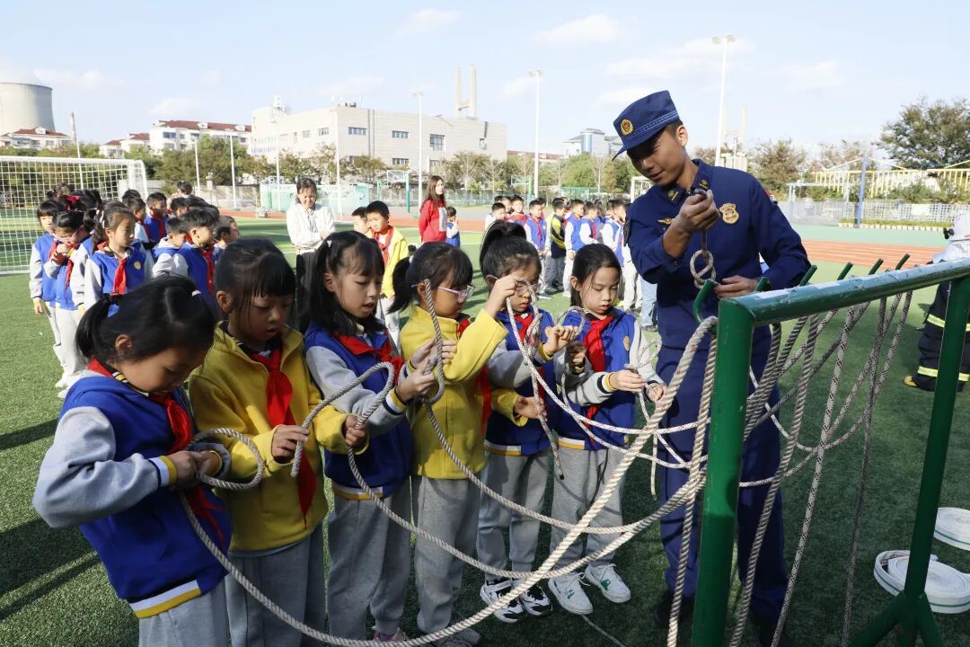 随后,光华消防救援站的消防员们为学生们展示了实战灭火救援与营救被困人员,赢得了学生们的阵阵掌声。