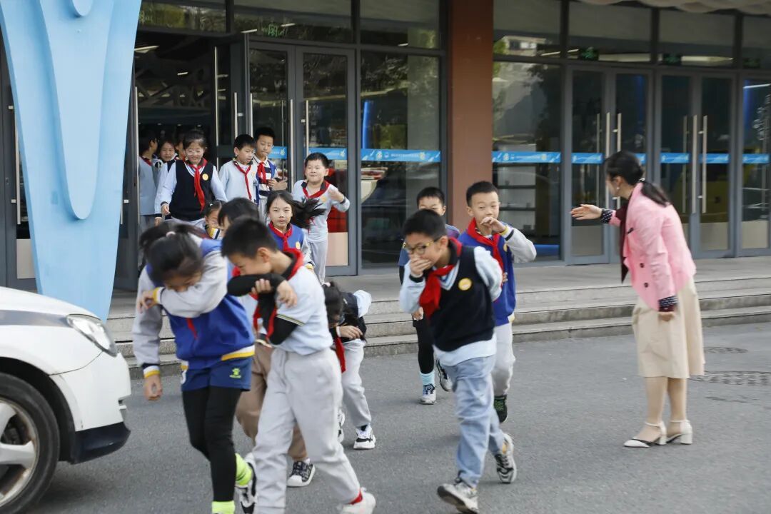 课堂培训结束后,吴泾实验小学全校举行了应急疏散演练。