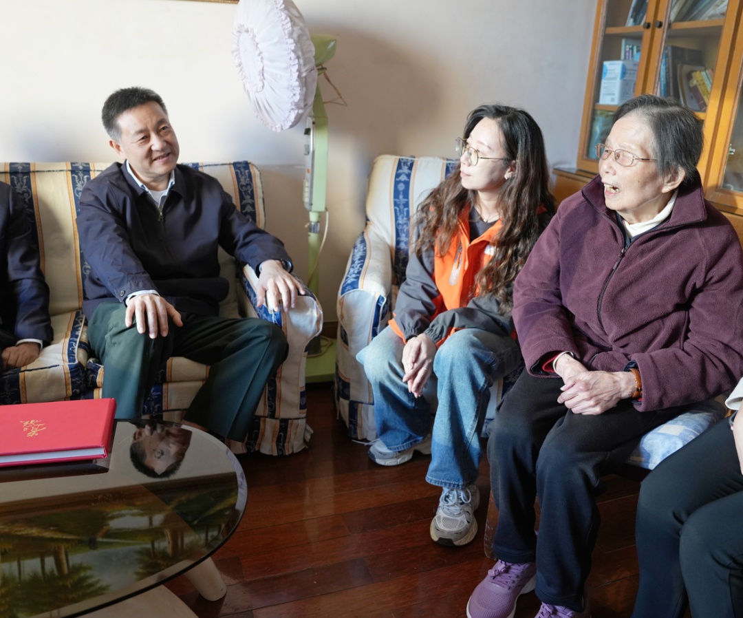 谈上伟一行来到常高公寓,看望百岁老人金妙莉并为老人送上鲜花,向她致以节日问候与诚挚祝福。交谈中,谈上伟细心询问老人的日常起居、身体状况和护理保障等情况,还一同翻看了记录岁月痕迹的家庭相册,聆听背后的温暖往事。“您最近胃口怎么样?晚上睡得好吗?”谈上伟俯身细问,言语温和,满含关切。了解到老人的生活与照护细节后,他特别叮嘱相关部门和街道社区,要主动发现、及时帮助解决老人生活中的实际困难,通过扎实而温暖的工作,为老年人营造一个安心、舒心的晚年生活环境。