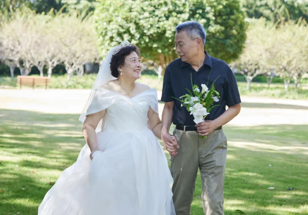当桂花香飘遍街巷,颛桥镇一场延续了十年的温情之约如期而至——金婚老人婚纱照拍摄活动。镜头前的“新人”,是1970年至1975年间结婚的颛桥户籍老人,是携手走过近半个世纪的夫妻。 在那个质朴的年代,一纸婚书、一桌家常便饭,可能就是一场婚礼的全部。披上圣洁的婚纱,为爱情留一张正式的影像,是许多老人深藏心底的梦。当婚纱礼服遇上银发,当唐装映衬着笑纹,时光仿佛在这一刻温柔重叠,为我们诉说关于爱情与陪伴最动人的答案。 他们的爱情,有千万种模样 爱情是如何开始的?每一对都有独特的注脚。 是“恰同学少年”的缘分。周若妹和张德福的爱情,始于高中校园的青涩时光。“是另一位高中同学帮我们撮合在一起的。”周若妹回忆起往事,嘴角泛起甜蜜的笑意。同样因同学结缘的还有张丽春和钟伯民。“读书时压根没往这方面想,后来走上工作岗位,一次同学聚会让我们重新认识了彼此。”张丽春奶奶笑着说。 周若妹和张德福 是“缘来你也在这里”的巧合。1958年,朱焕文和贺华芳分别从华东师范大学、上海师范大学毕业,被统一分配到浦东杜行中学任教,相同的教育理想让他们走到了一起。夏剑峰和林金英的爱情,始于21岁与19岁的青春邂逅。“我今年79岁,和她认识整整58年了。”夏剑峰的话语里满是感慨。 朱焕文和贺华芳 林金英和夏剑峰 是“经人介绍”的踏实。徐继禹和陆莲珠1975年经人介绍认识,一次简单的相识,成就了半生的相守。吴梅华和卫耀昌1973年经人介绍结缘,军人出身的卫耀昌,用责任与担当守护了妻子一辈子。 徐继禹和陆莲珠 吴梅华和卫耀昌 半世纪相伴,幸福秘诀是什么? 五十年的风雨同舟,磕磕绊绊总是难免。问及相处之道,他们的答案朴实无华,却蕴含着婚姻的大智慧—— 是彼此理解,不耿耿于怀。面对柴米油盐的琐碎和不称心,张丽春和钟伯民始终坚守“互相谅解”的准则,将平淡日子过成了诗。“偶尔不开心也免不了,只要不是原则性问题,大家相互迁就一下就好。开心最重要,人开心了身体自然就好。”周若妹说。 张丽春和钟伯民 是相互退让,心态平和。1967年相恋,1968年成婚,潘雪林和庄顺娣相伴五十余载。“我发脾气时老公就不说话,他发脾气时我就不说话,自然就吵不起来了。”庄顺娣的话语里满是智慧,“我想一直照顾他下去”的承诺,更是跨越半生的深情告白。 潘雪林和庄顺娣 是看见付出,心怀感恩。朱关鸿对妻子谢安妹的疼惜,藏在一句“你很辛苦”里:“她带孩子很辛苦,我就跟她说,以后你有什么脾气我都不跟你计较。”如今两位老人已80岁高龄,虽不能远游,却能在上海周边逛逛散心,享受属于他们的惬意时光。 朱关鸿和谢安妹 是脾性相投,知足常乐。李桂香和吴国芳直言两人没有什么秘诀,关键在于“我们两个脾气最好”。徐金娣和卞品芳1974年相识成婚,卞爷爷一句“她比较直爽,也蛮厉害的”,语气里藏不住的宠溺。王才航和吕红连跨越南北的结合,始于一句“我会做饭”的承诺——“我北方人,他上海人,我跟他讲我不会做饭,他说他来做。”吕红连调皮地笑着。 李桂香和吴国芳 徐金娣和卞品芳 王才航和吕红连 记录此刻,让爱永远鲜活 关于未来,他们没有豪言壮语,最大的心愿出奇地一致。“希望平平安安健健康康,快快乐乐过好每一天,我们要争取活到100岁!”贺华芳说。一句朴实的话,勾勒出“执子之手,与子偕老”最真实的模样。 翟凤才和俞雅琴 谢正良和凌德仁 从2015年到2025年,颛桥镇金婚摄影活动已走过十个年头。这十年里,镜头定格了上百对金婚老人在半世纪岁月里的闪光碎片,是初见时的羞涩目光,是风雨同舟时紧握的双手,更是如今鬓角染霜仍彼此依赖的温柔。这不仅为长者们圆一个青春的梦,更是一堂关于“爱”的公开课。 今年,这份爱有了更加珍贵的载体——颛桥邮政支局特别为金婚活动十周年制作了专属邮票纪念册。 值此重阳佳节 祝福所有老人 健康长寿,幸福安康 愿岁月温柔,善待每一份深情 江彩玉和赵林华 林瑞麟和顾小红 江根娣和朱云熙