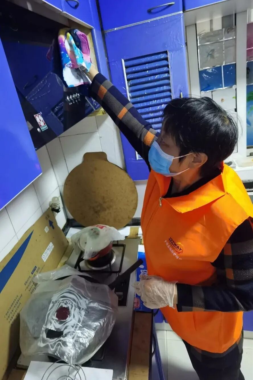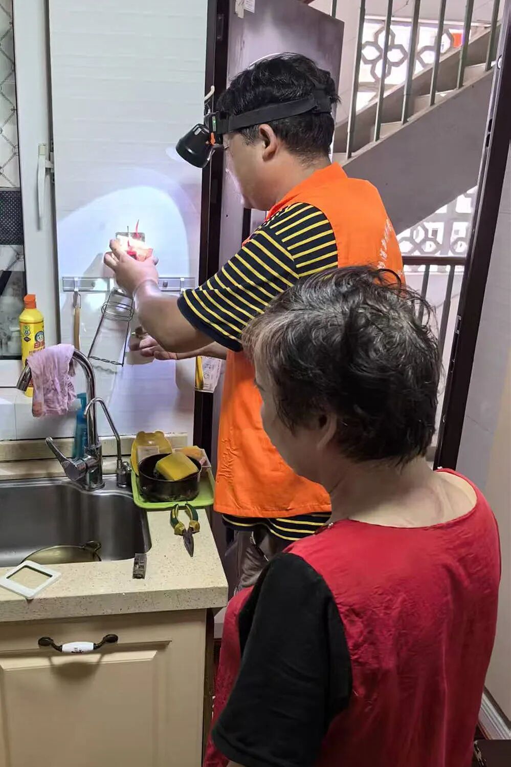 维修师傅小王边清理油烟机,边提醒老人。刘伯伯是无子女的独居老人。几天前,家中的油烟机突然坏了,做饭就成了难题。抱着试试看的想法,老人申请了“个性化服务清单”中的“物业维修”服务。没想到,当天下午师傅就上门了。