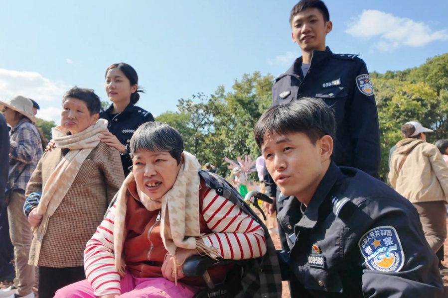 这份“精准”沉淀更在日复一日的坚守中,有一种关爱就已经持续了26年。重阳节前夕,杨浦交管支队的倪嘉辉推着轮椅,陪“琳妈”陈爱琳来到共青森林公园看菊花展。“琳妈,你看这里有菊花展,我们一起过个节。”陈爱琳老人无子女,双腿残疾,却有一群交警“干儿子”。这份缘分始于26年前的民警肖玉泉,他去世后,金海波、倪嘉辉等新生代民警无缝衔接。