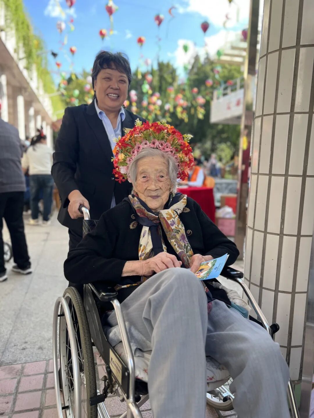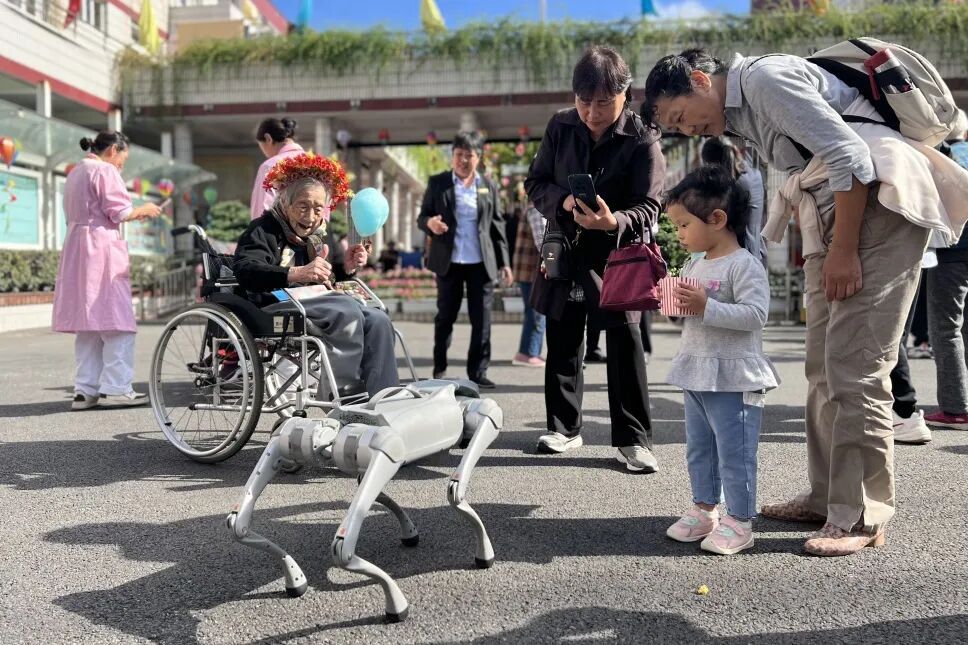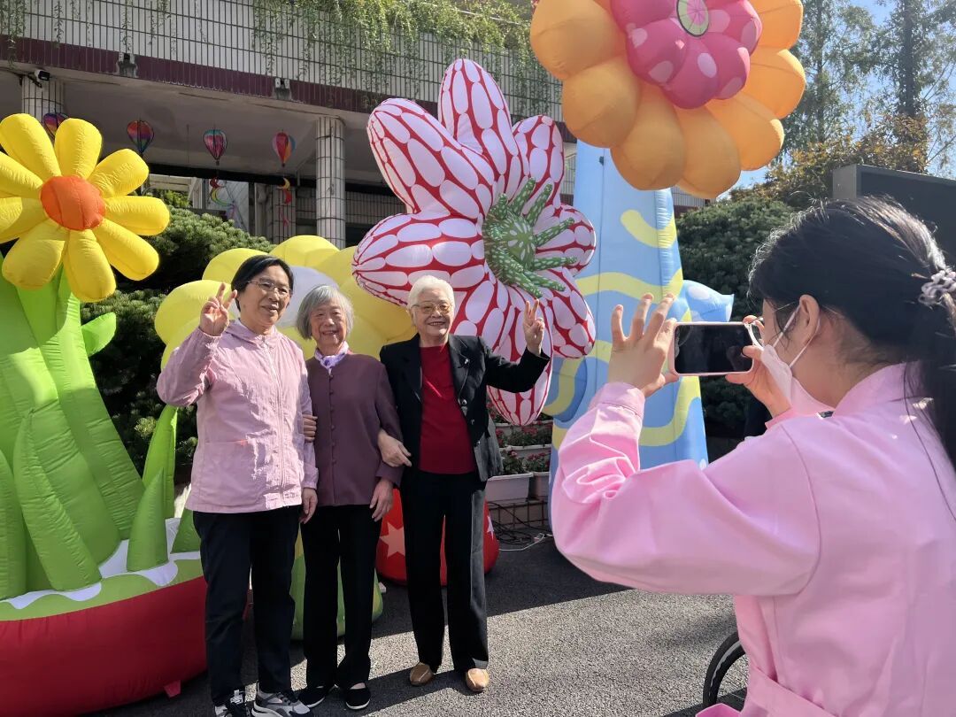 这边是复古相机前的“定格美好”,那边是科技互动区的机器狗“翻跟头”。100岁的陆雪珍奶奶戴着簪花发箍,高兴地说:“年年都有新花样,我100岁了,还能见识这么多新鲜事物!”福利院负责人表示,活动既复刻怀旧,也引入科技,就是为了同时满足老人的娱乐与情感需求。
