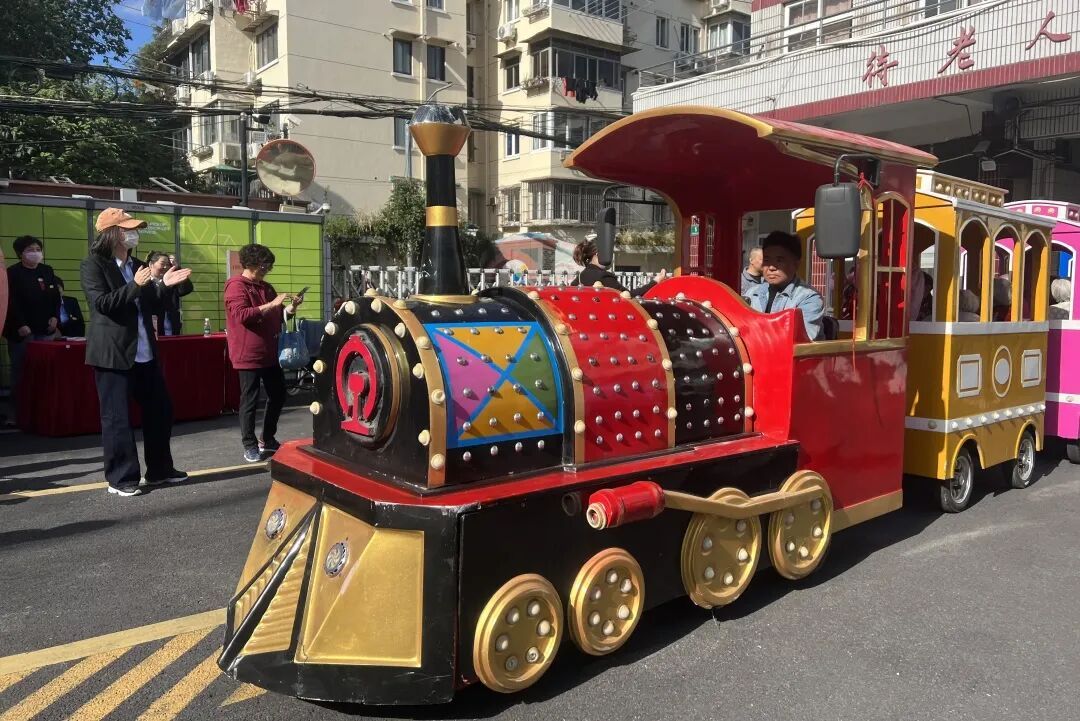 养老院里的“花式”服务,聚焦于老人的“心愉悦”。今天一早,在杨浦区社会福利院,“重Young节 正芳华”游园会中,那辆象征节日的小火车又开动了,“乘客们”举着棉花糖、爆米花,仿佛集体“返老还童”。“坐小火车的感觉真好,让我想起以前旅游的日子。”一位奶奶感慨。