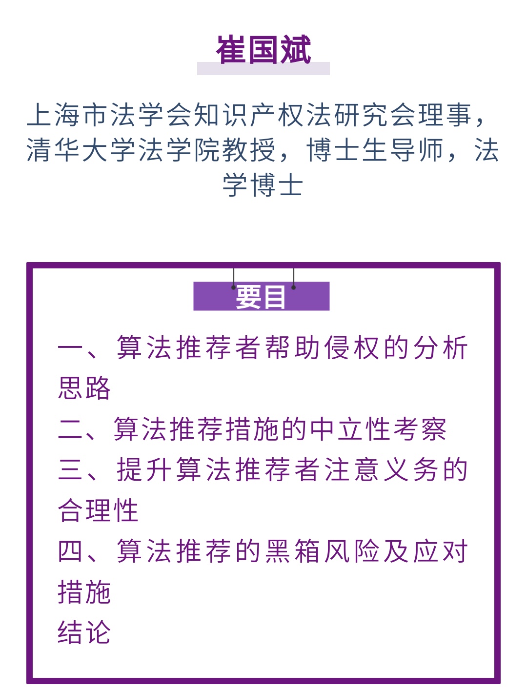徐俊|互联网平台算法推荐的版权侵权责任研究