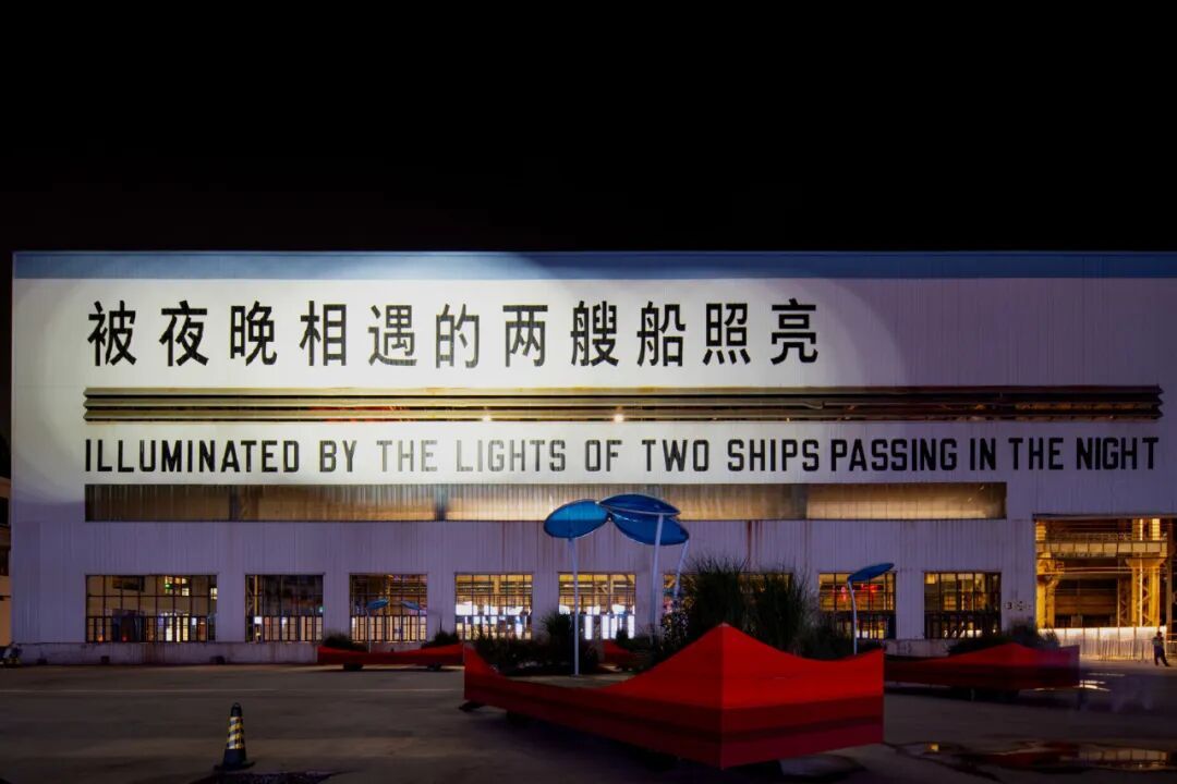 Lawrence Weiner《被夜晚相遇的两艘船照亮》