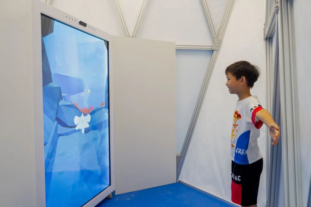 《量子梦境》是一个虚实贯穿交互体验展,通过直觉化的体感交互方式将线下和线上两个平行空间桥接锚固,构建成完整的虚实贯穿系统,使用户沉浸于量子岛上“此地彼时”的体验,呼应量子城市理念。作品由平行空间负责策划和设计,狒狒智能和鸧辰文化提供技术支持,青昀新材料、EPSON提供材料及设备支持。