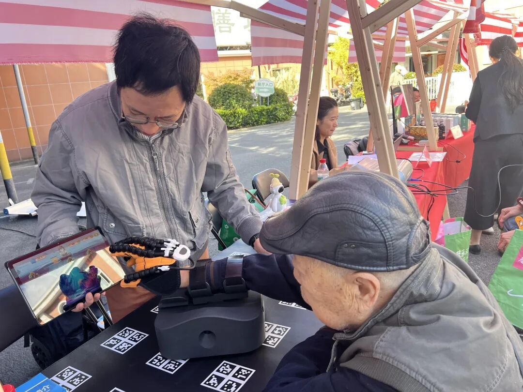 科技适老成为现场亮点。手功能康复机器人、外骨骼助力机器人等智能设备向老人开放体验,通过互动展示科技如何为银发生活赋能。不少老人感慨:“原来科技产品也能这么贴心!”