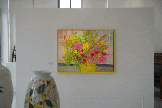 二楼的索美画廊是这里的一大特色,当下正举办着“与大师同行”——顾月华艺术展暨新书签售会,这也是书店“书香+画境”的首次实践。画展里,既有她笔下清雅的江南水乡——青瓦白墙映在水里,连波纹都透着温柔;也带来了她的新书《一个女人的天方夜谭》。这本书是顾月华的回忆录,更像是一部充满哲理与诗意的生命叙事,书中汇集了她大半个人生的丰富经历,用文字和画笔编织成一幅绚烂而深刻的精神图景。不少读者欣赏完画展,就坐在旁边的长椅上看书,画里的光影和书里的文字呼应着。据介绍,书店每周会有沙龙活动,围绕文化交流和亲子互动两大类,包括作家分享会、签售会、亲子共读会、亲子手工坊等。