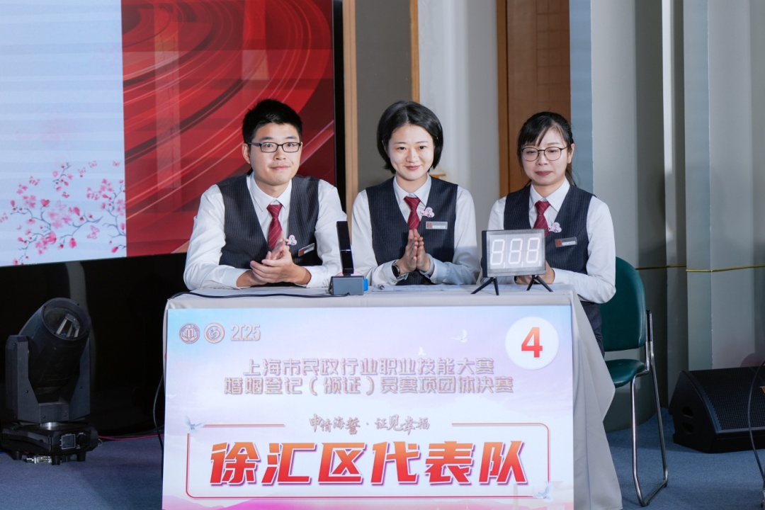 近日,2025年上海市民政行业职业技能大赛婚姻登记(颁证)员赛项决赛暨颁奖典礼落下帷幕。经过激烈角逐,徐汇区婚姻登记机关凭借扎实的业务功底和出色的团队协作,荣获团体二等奖,个人赛选手亦斩获优胜奖,展现了“徐汇服务”的专业底色与温度。