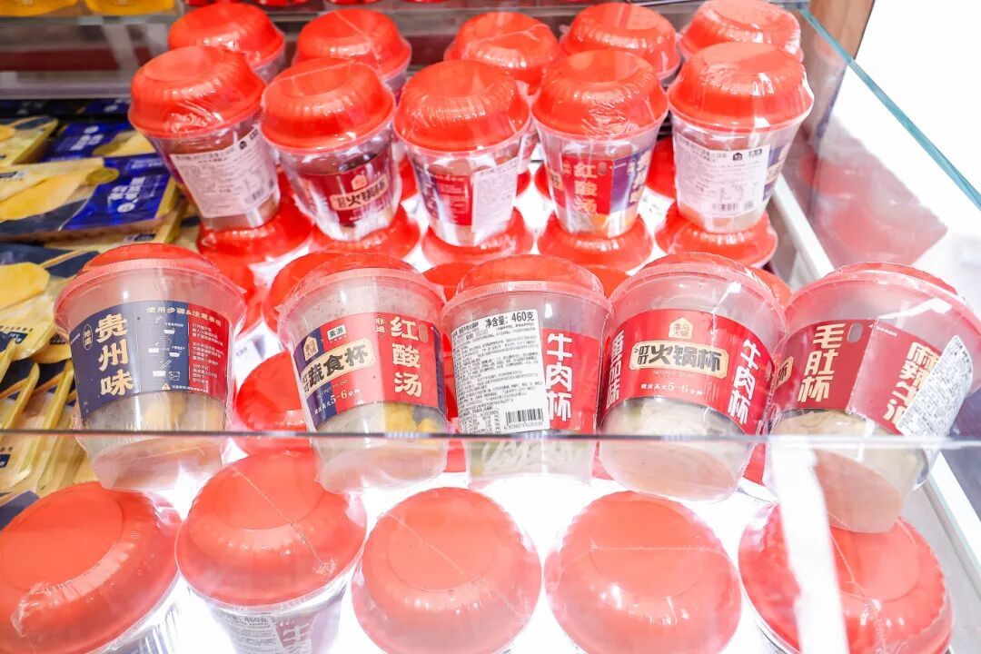 仪式现场,线下集市首次对外开放,盒马带来多款“懒人友好型”火锅产品,如微波炉加热5分钟即食的火锅杯系列,适合一人食及办公室等多种场景,契合当下年轻人高效便捷的消费需求,还有非遗重庆老牛油火锅、山野云贵酸汤火锅、山茶油菌菇健康锅等地方特色新品,为消费者提供丰富选择,简单搭配便能解锁地道美味。
