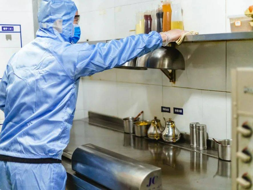 各类餐饮服务单位要加强从业人员健康管理,严格晨检,规范佩戴口罩、清洗手部,穿戴工作服和手套,严禁带病上岗污染食品;定期对就餐区、厕所等区域进行清洁消毒,尤其是门把手、楼梯和水龙头、各类手触按钮等,积极做好传染病预防工作。