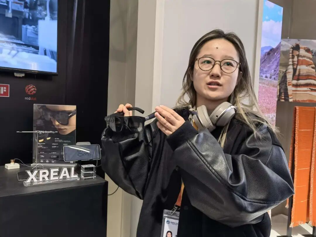 极具代表性的上海品牌故事区域,既有老字号的传承焕新,也有初创品牌和新消费品牌的创新故事。百年品牌老凤祥带来“繁花秘境”花冠首饰,它曾在米兰时装周上惊艳全场。多次亮相巴黎时装周的高端羊绒品牌沙涓带来了羊绒手工氆氇艺术浮线手捻围巾和披毯。还有一个吸睛展品来自智能穿戴行业XREAL One Pro AR智能眼镜,消费级AR领域的领军企业XREAL连续4年全球消费级AR眼镜销量第一。
