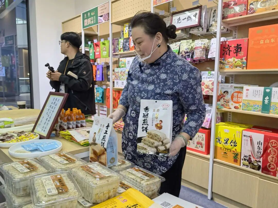 山东馆以“老字号与外贸优品融合展示”为主线,巧妙融入“齐鲁1号”文化列车设计理念,将六大展区打造为“文化站点”。齐鲁名吃、孔孟有礼、海岱颐养、鲁韵文创、山东手造、智享生活,分别呈现山东老字号、非遗技艺与外贸优品企业的创新成果。