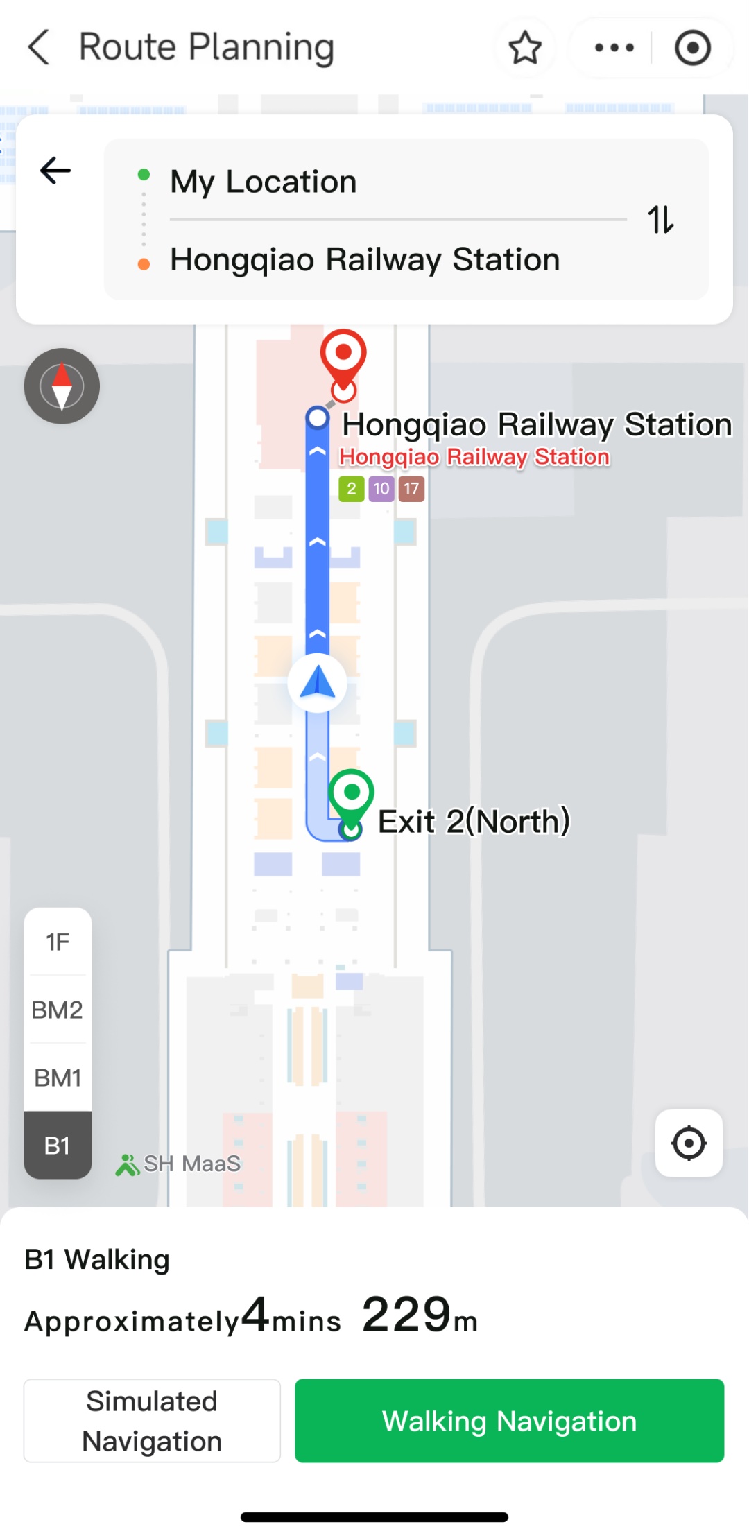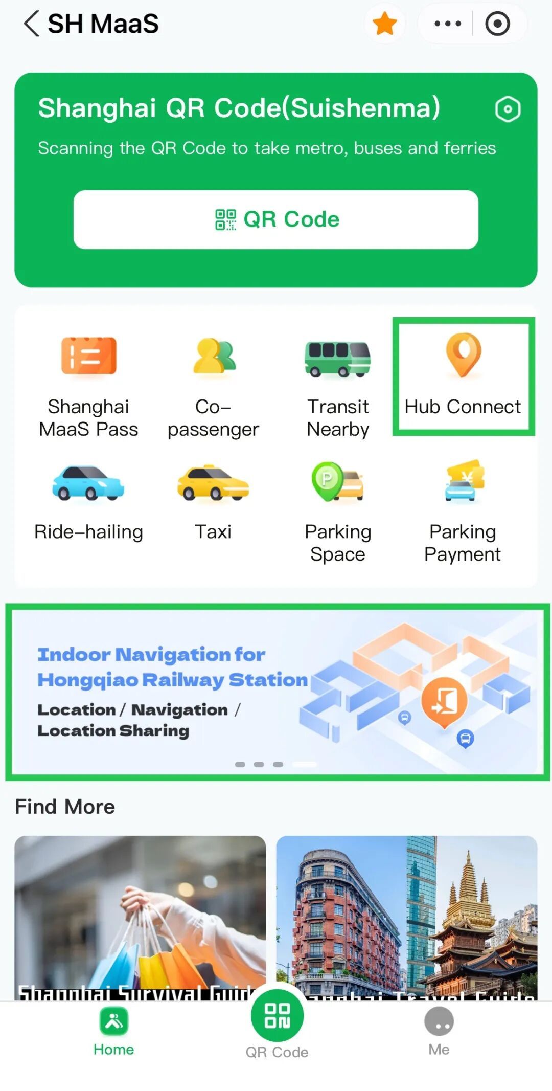 Method 2: Search and download “SH MaaS” in app store, or search for the "Suishenxing" mini-program via WeCaht or Alipay. Then, tap on "Hub Connect", switch to “Shanghai Hongqiao Railway Station”, and activate the "Indoor Navigation" service.