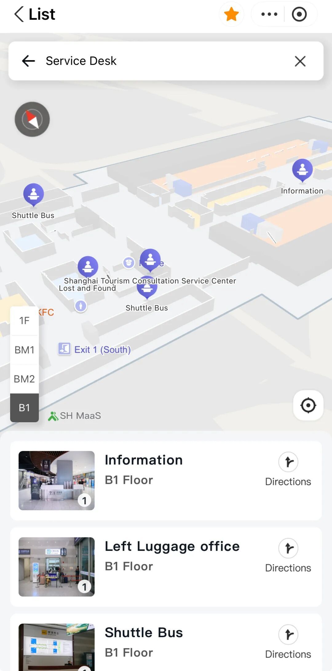 站内设施快捷搜索:搜索栏输入关键词如“Restroom”、“Elevator”、“Restaurant”等,快速定位目标地点,跟着导航前往。