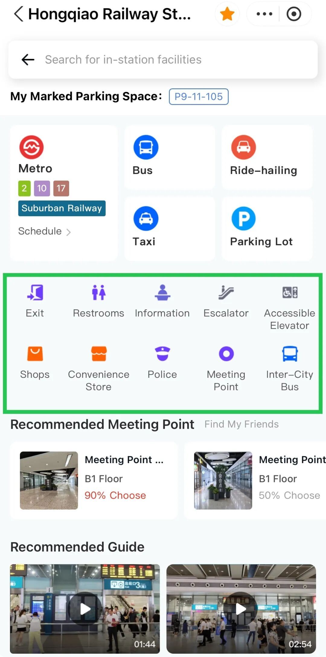 Car locator: After parking at P9 or P10, mark your spot in the "Indoor Navigation". When you return, the system will generate a walking route to your vehicle.