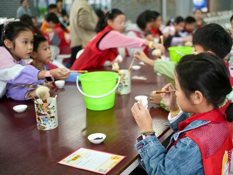 讲解员按“注浆—倒浆—脱模—烧制”四步时间轴依次介绍生肖灌注:固定硅胶模、舀瓷浆、控壁厚、再送窑火,少年们跟着节奏点头呼应,一只只瓷生肖随工序在脑海里逐件浮现,零距离感知可塑与高温的魔法。