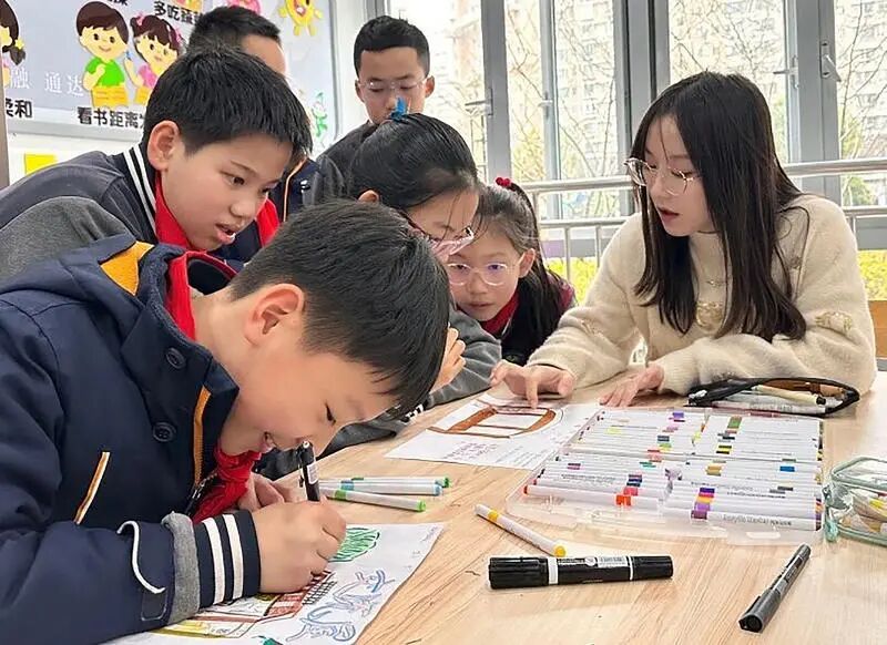 为确保小亭持久焕发活力,居民区与上师大卢实小共同构建了常态化运维机制。学校老师担任小站主理人,学生们组成“护亭先锋”队,每月定期开展环境保洁、设施巡检和创意征集三大行动。