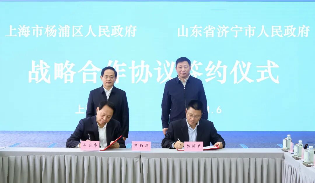 今天(11月6日)上午,上海市杨浦区人民政府与山东省济宁市人民政府签订战略合作协议。杨浦区委副书记、区长周海鹰,济宁市委副书记、市长张海波出席活动并讲话。 在周海鹰、张海波的共同见证下,杨浦区委常委、常务副区长尼冰,济宁市委常委、常务副市长刘东波作为双方代表,签订战略合作协议。未来,双方将以此次签约为起点,高效推进合作落地,实现优势互补、互利共赢。 周海鹰指出,杨浦与济宁虽然山水相隔,但气质共鸣、底蕴契合,希望双方以党的二十届四中全会精神为指引,共筑科创策源新引擎,加强对接交流,以新质生产力更好赋能高质量发展。共谋产业发展新机遇,充分依托杨浦研发优势和济宁制造优势,以数智化为导向,把握两业融合趋势,推动两地智能制造产业延链补链、联动发展。共绘人文交融新图景,立足两地特色文化资源,为两地市民带来更加丰富多元的人文体验。 张海波指出,济宁、杨浦资源禀赋互补性强,合作前景广阔,战略合作协议的签订,标志着双方合作进入了一个崭新阶段。未来,希望双方在科技创新和产业创新、实体经济和数字经济、先进制造业和现代服务业等方面深度融合,全方位加强产业协同、科创联动、文旅互动、两业融合、市场共享、城市共建,合力推动双方合作事项落地见效,实现互利共赢。 会前,济宁市人民政府代表团一行还参观了杨浦滨江沿线,考察了上海人民城市实践展示馆和杨浦区城市规划展示馆,实地感受杨浦创新转型的发展活力。 杨浦区委常委、副区长徐建华主持活动,济宁市政府党组成员、秘书长张斌举参加。