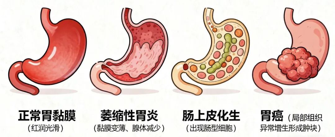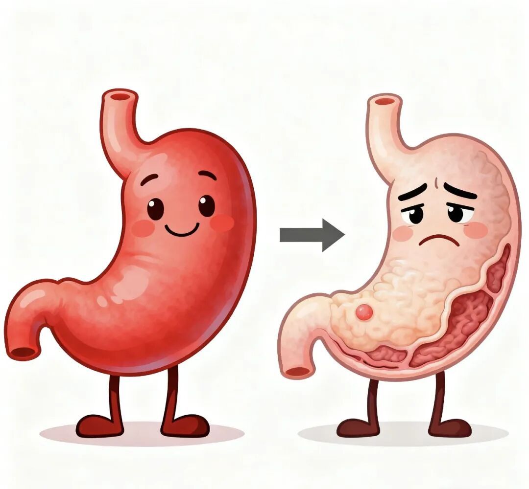 • 屏障功能减弱:保护性黏液减少,胃壁更容易受到胃酸和细菌的侵蚀。