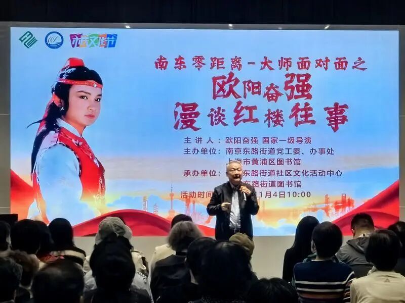 11月4日上午,黄浦区图书馆三楼活动会场座无虚席。在越剧《天上掉下个林妹妹》的悠扬唱腔中,一场名为“南东零距离·大师面对面——欧阳奋强漫谈红楼往事”的活动拉开序幕。台下座无虚席,几位身着汉服的年轻人格外引人注目——他们是《红楼梦》的忠实读者,以cosplay的方式向经典致敬。