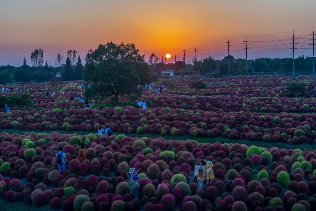 秋日的金山,是一幅铺展在乡村田园的诗意画卷。廊下郊野公园内稻浪翻金,四处洋溢着丰收欢趣,游客可亲手打莲湘、学做眉毛饺,或在农家灶头烧上一锅菜饭,品味“舌尖上的乡愁”。花开海上生态园内,地肤草染红山坡,格桑花海摇曳生香,是摄影打卡的绝佳胜地。登临东林寺,仰望基尼斯纪录的千手观音,静心品禅茶,感受千年古刹的庄严与宁静。吕巷水果公园正值丰收季,可亲手采摘品尝秋日甜蜜,或参与土布贴画、米糕制作等非遗体验活动。最后一站抵达漕泾水窠景区,乘坐游船穿行河道,看芦苇荡倒映碧空,品尝现捞的本地鱼鲜,感受江南水韵的灵动温润。从花海寻芳到古寺听钟,从民俗体验到水乡品鲜,每一处景致都藏着金山的时令密码与人文温度,让乡村魅力在康养之旅中徐徐绽放。