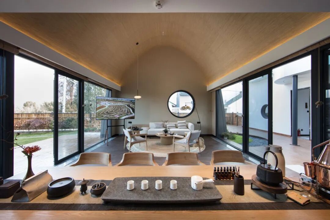 青普这厢:推窗即可看见无边的稻田以及生态完整的水系,宁静的乡村夜晚,听觉是唯一醒着的感官,蝉叫,蛙鸣,让田园回归田园。后院围绕面包窑和桂花树,更多生活方式在这里展开。慢下来喝一杯清香四溢的热茶,比如与三五好友把酒言欢。都是难忘的乡村记忆。