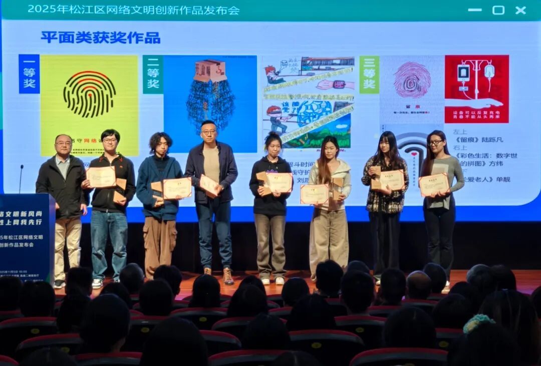 11月5日,由松江区委宣传部、区委网信办主办,上海视觉艺术学院承办的“网络文明新风尚,理性上网我先行”2025年松江区网络文明作品创新赛作品发布会在上海视觉艺术学院举行。松江区委常委、宣传部部长顾建斌,上海视觉艺术学院党委书记吴嘉敏出席发布会。活动现场发布了平面、文创、视频三类获奖作品名单,并为获奖者授奖。本次获奖的优秀作品还将通过东方网等平台向公众展播,引导广大网民自觉树立正确的网络价值观,共同营造清朗、健康、和谐的网络环境。
