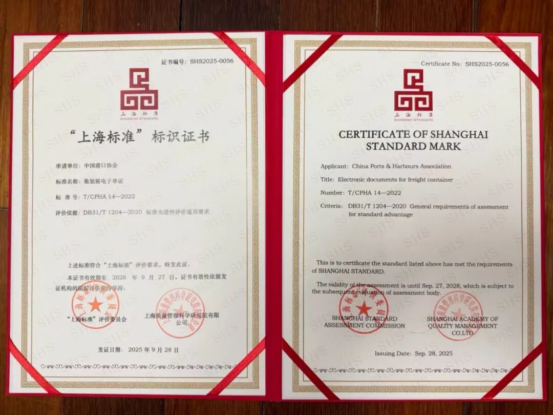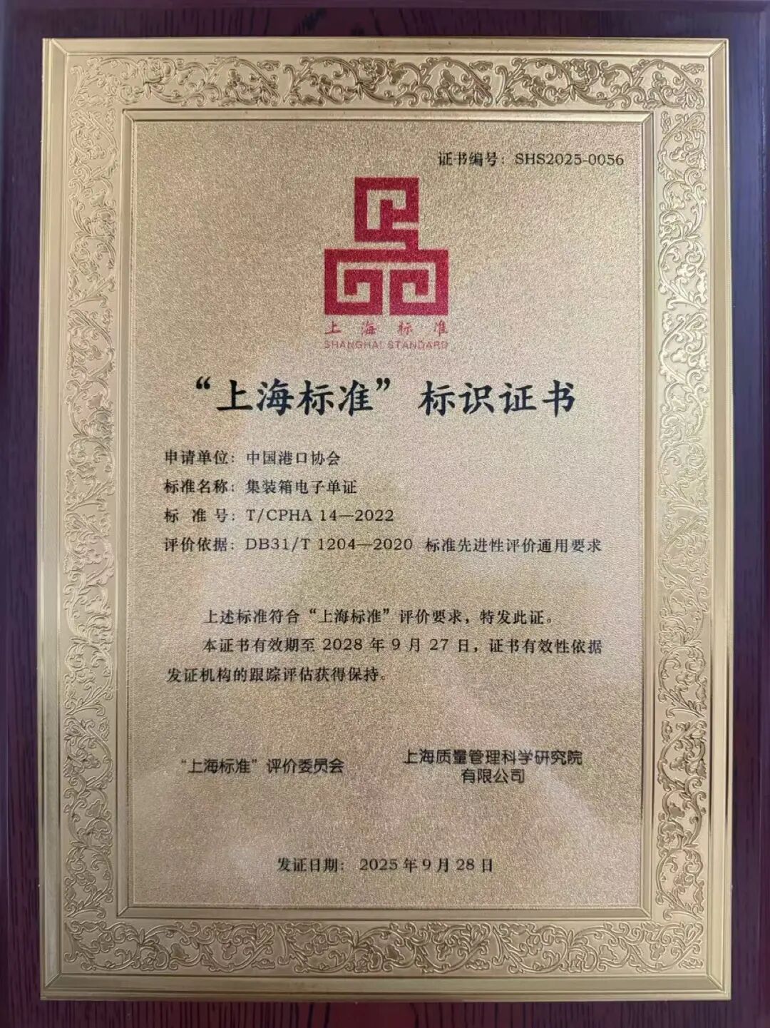 日前,在上海市2025年“世界标准日”主题活动上发布了12项“上海标准”。其中,经虹口区市场监管局推荐和指导,中国港口协会和上海国际港务(集团)股份有限公司等单位联合编制的团体标准《集装箱电子单证》,喜获“上海标准”称号。 “集装箱电子单证标准”为全国港口集装箱电子单证的无纸化、数字化流转提供统一明确的技术规范,填补了国内在集装箱电子单证数据内容、信息交互及业务协同等方面长期缺乏系统性标准的空白,是港口航运行业内的一次重要创新。实践表明,电子单证使单证处理效率和业务处理时效大大提升,显著缩短港口操作周期,加快船舶和集装箱周转,整体物流效率得到质的飞跃。该标准的制定和实施对推动我国港口数字化转型、提升物流链系统效率、优化口岸营商环境具有非常显著的引领示范和指导借鉴作用。 截至目前,虹口区已连续4年获评5项“上海标准”。此前,中国科学院上海技术物理研究所的企业标准《星载光栅分光型高光谱相机产品规范》获2024年度“上海标准”,中国科学院上海技术物理研究所制定的企业标准《星载直线型脉管制冷机规范》获2023年度“上海标准”称号,上海航运交易所制定的企业标准《出口集装箱运价指数编制规范》和中国科学院上海技术物理研究所制定的企业标准《遥感用R01M-2.5型InGaAs探测器详细规范》获2022年度“上海标准”称号。 虹口区市场监管局在推进“上海标准”工作中形成了“宣传引导、精准指导、政策扶持”三位一体、环环相扣的工作链条,对照国内领先、国际先进的要求,将目光聚焦于高端航运服务、高端装备、绿色低碳等虹口区重点产业领域,积极从高质量标准中发掘潜力,实现标准化与产业发展的深度融合,不断拓展“上海标准”的覆盖面和影响力,为本区乃至本市产业高质量发展注入更多“标准动力”,努力书写市场监管服务经济社会发展新篇章。