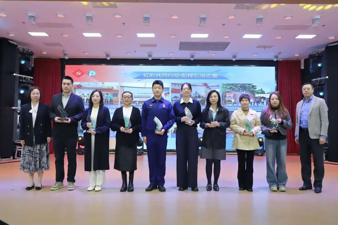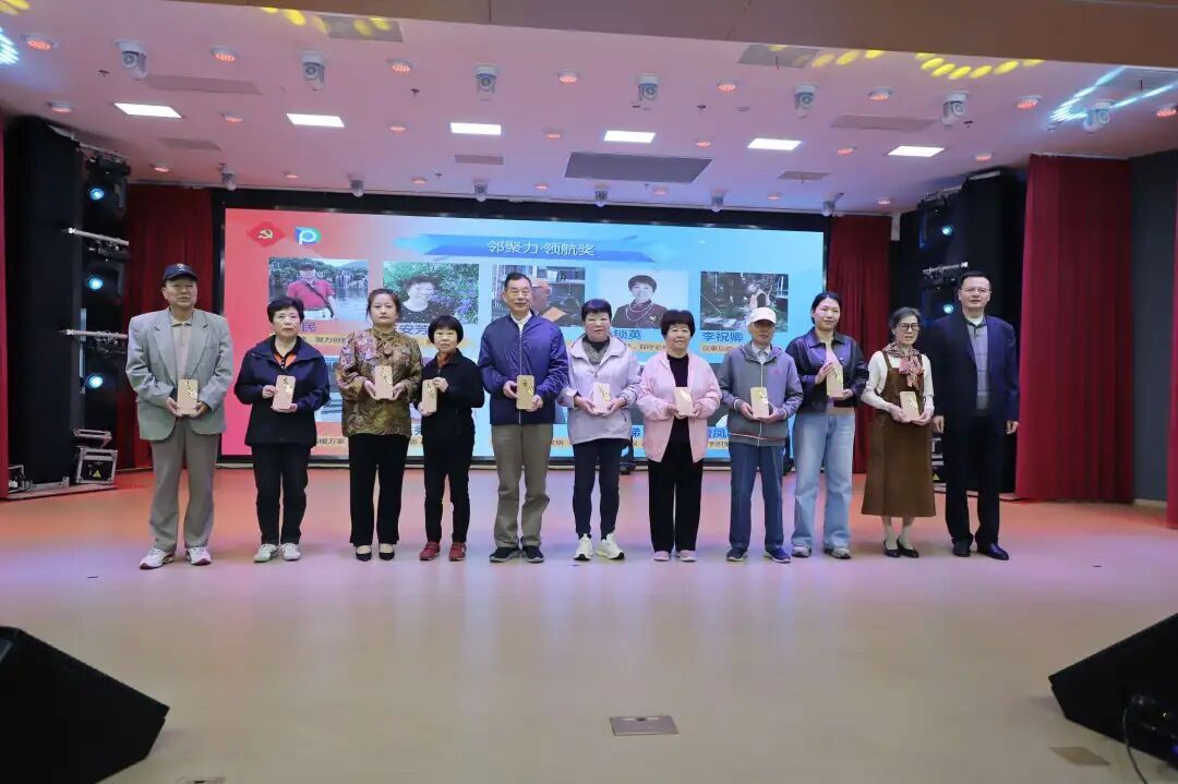 “聚势——治理提质”环节通过《彭浦“柱”力记》短剧,再现了楼组治理五年的发展历程。为表彰先进,现场为10位“邻聚力·楼组骨干”和10位“彭邻格·治理达人”颁发了奖杯,致敬他们在美丽楼组建设和网格治理中的杰出贡献。