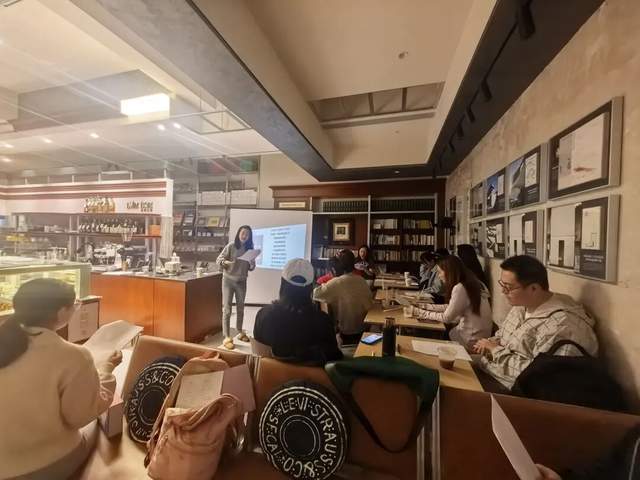活动伊始,毛姆礼帽咖啡馆(永嘉路店)店长姚慧敏,围绕店铺与英国作家毛姆的关联、墙上礼帽的故事展开分享,从文学印记到书房的文艺设计,生动呈现了这家咖啡空间的“文化磁场”。正是这份独特属性,让此处成为青年打卡、社交的热门地。“把团组织建在有故事的咖啡店里,本身就是创新。”现场青年嘉宾感慨,姚慧敏的分享不仅让大家读懂咖啡空间的文化底蕴,更让团组织告别“距离感”,嵌入青年喝咖啡、聊兴趣的日常场景。