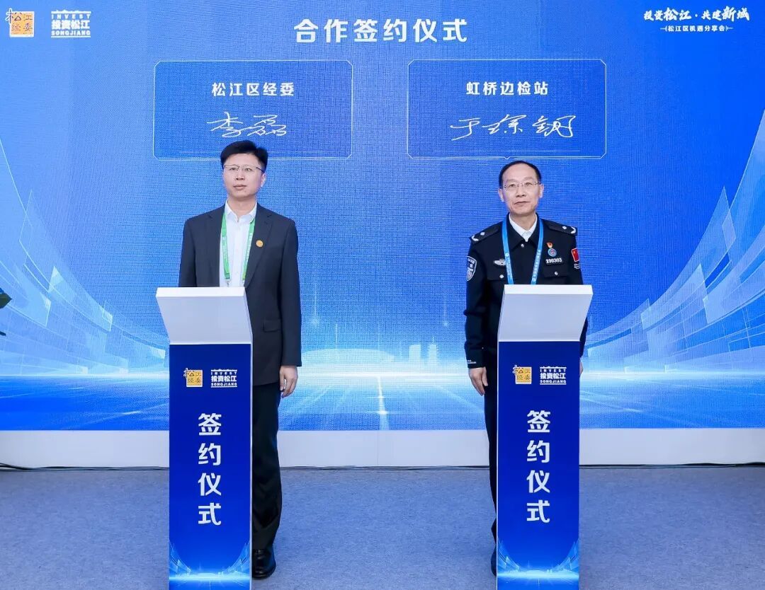 首批聚焦通关便利,松江区经济委员会与上海边检总站虹桥边检站、松江区商务发展促进中心与上海邮政国际业务分公司分别“握手”,为跨境物流提速增效。