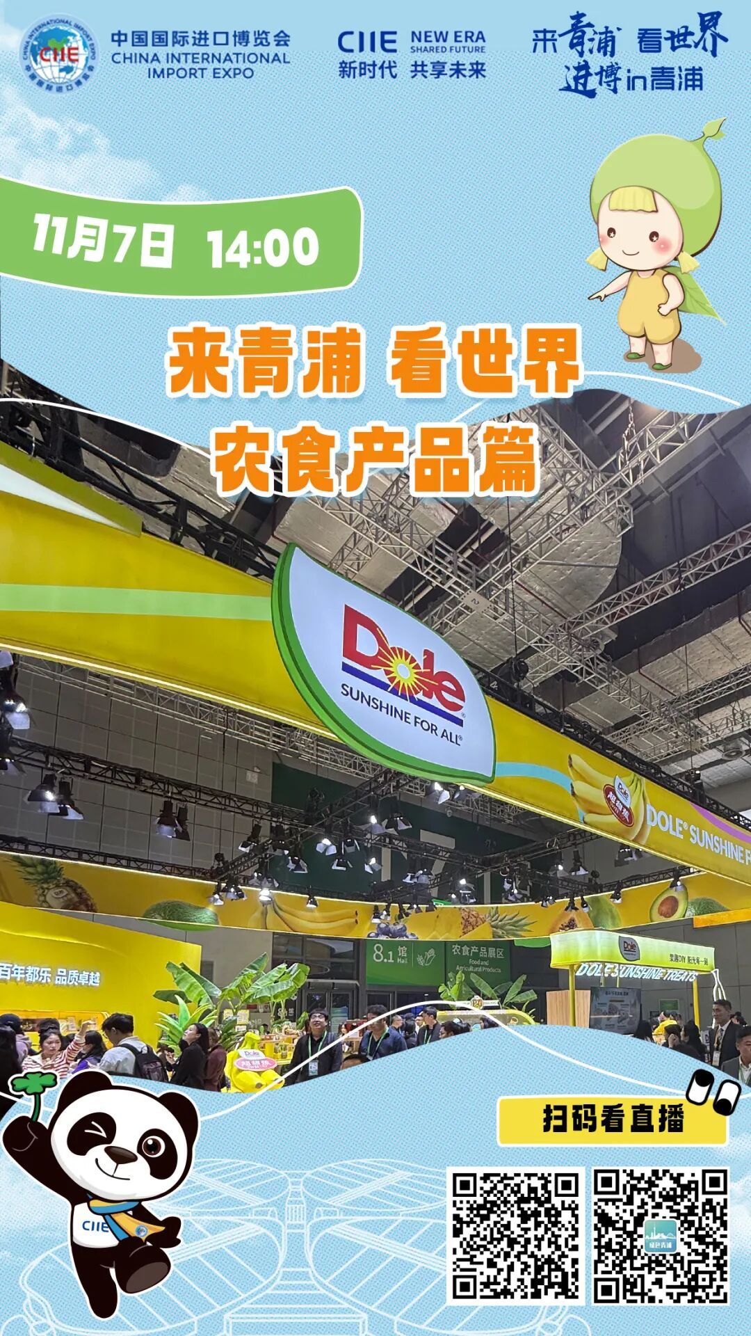 今天(11月7日)14点,“绿色青浦”将带大家一同打卡第八届中国国际进口博览会农食产品展区,现场探访直播活动将同步在“绿色青浦”APP、视频号、抖音号、快手号推送,让我们一起拭目以待吧~
