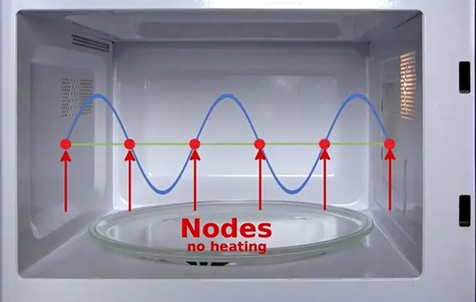需要强调的是,这种方法更像是一个科普演示,并不能得到真正精确的光速。微波炉内部的电磁场分布十分复杂,实际频率也会有细微漂移,加上现代微波炉常常配备“模式搅拌器”(mode stirrer),通过旋转金属扇叶来不断打乱固定的驻波,从而改善加热均匀性。因此你看到的烤焦点并不是完全理想的“驻波腹”,而是局部能量相对更强的区域。它们仍然能帮助我们直观理解驻波现象,但实验结果只能算是“数量级正确”,而非严谨的物理测量。