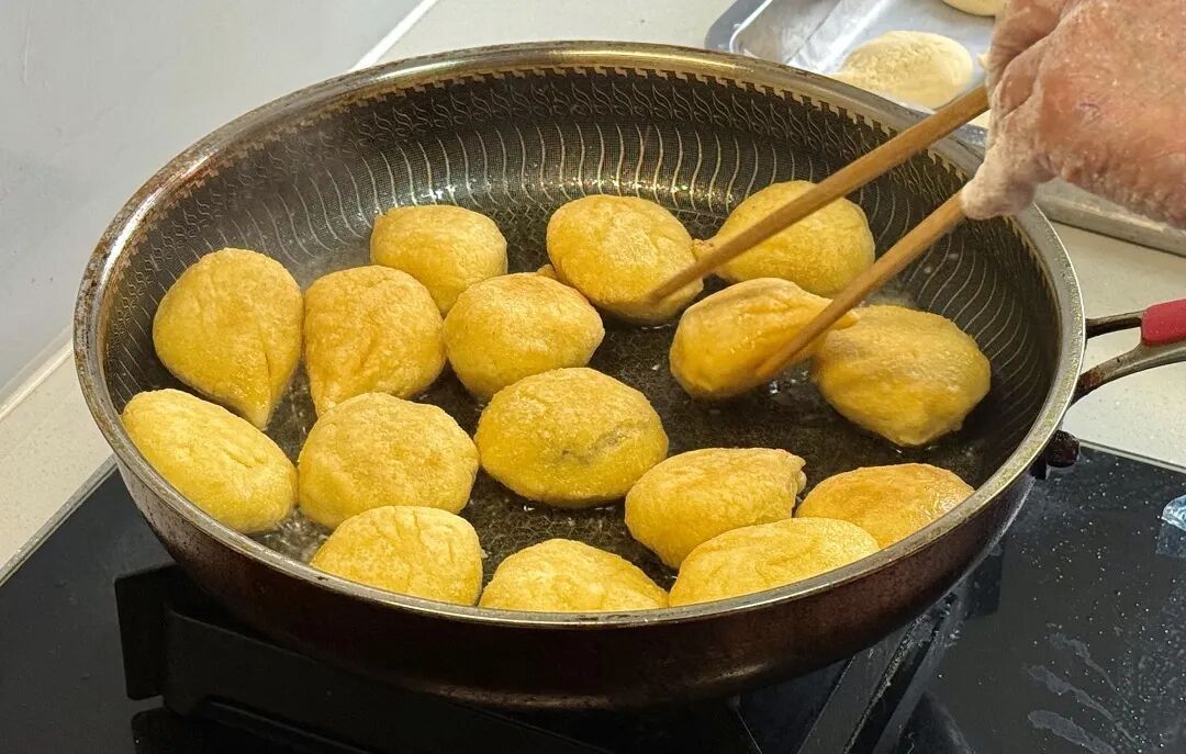 在奉贤人的记忆里,塌饼虽不是精致的点心,却是这个时节最实在的冬日暖意。老话说,立冬要护脾胃,而自带清甜与水分的南瓜,正是做塌饼皮的绝佳食材——这道金灿灿的南瓜塌饼,热乎咬上一口,“咪道”不要老好!