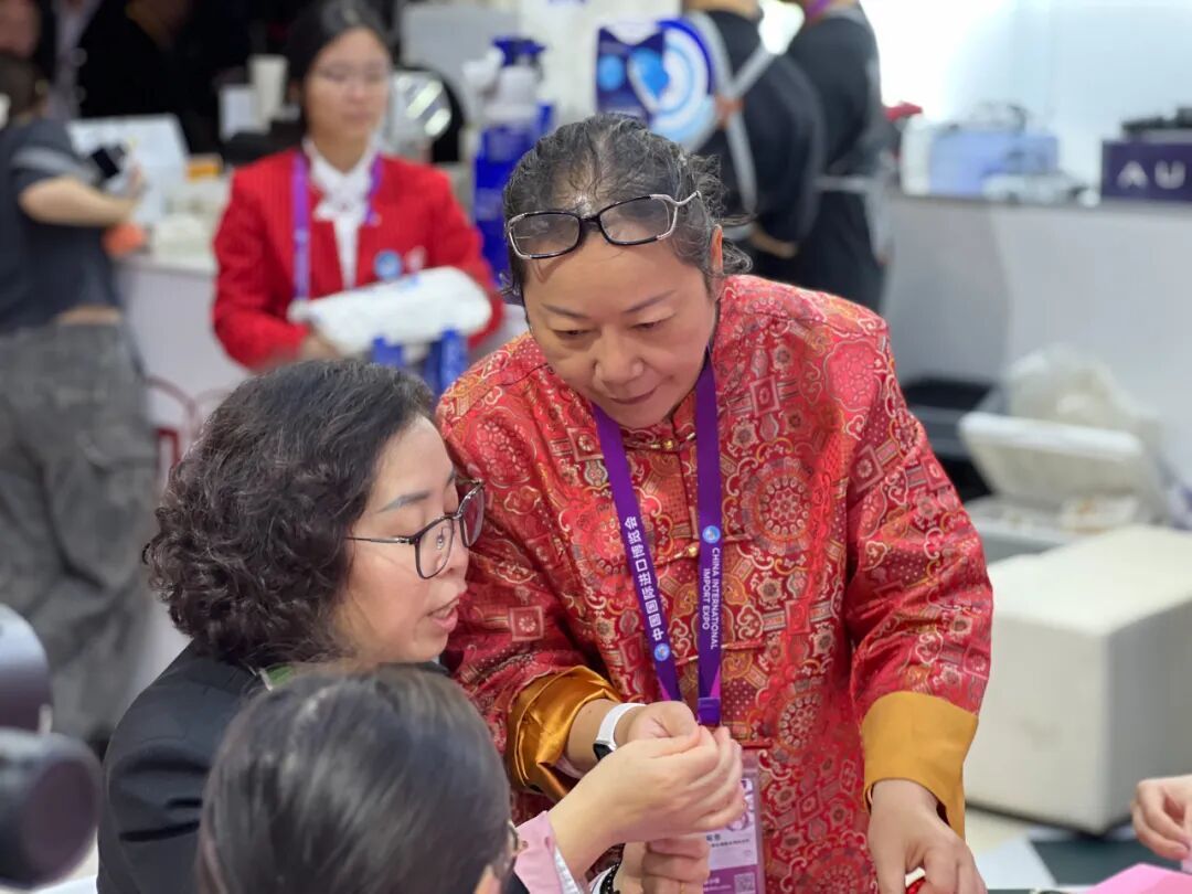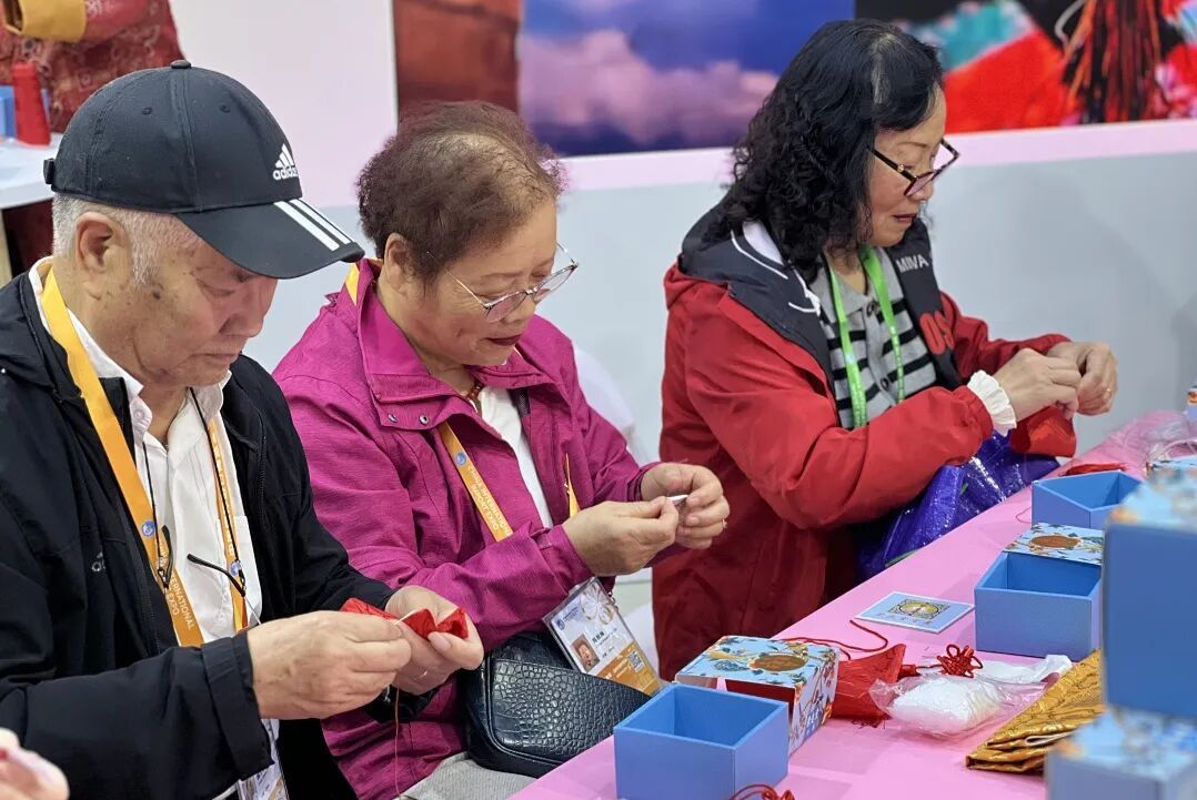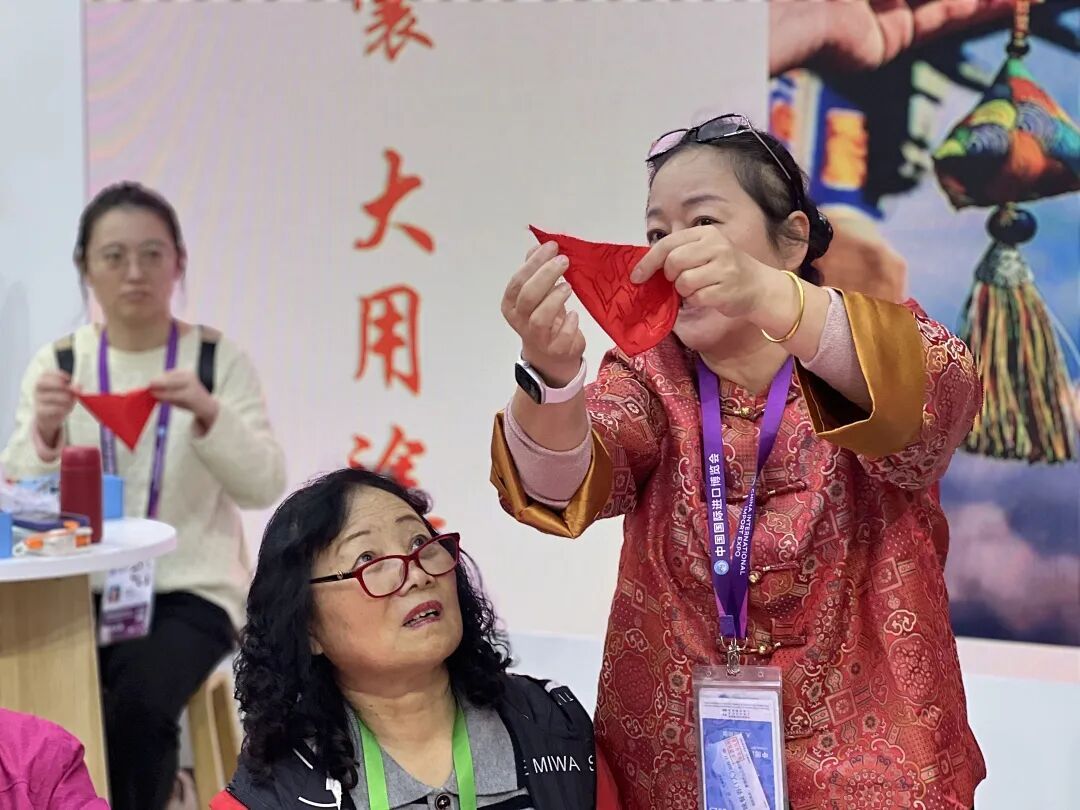 “听说是‘非遗’,我就想来学习一下。”一位年轻的参展商体验者笑着说,手中针线不停,“我已经很多年没做过手工了,没想到能在进博会上看到这么有趣的手工体验活动。做起来有点难,但是乐趣无穷!”