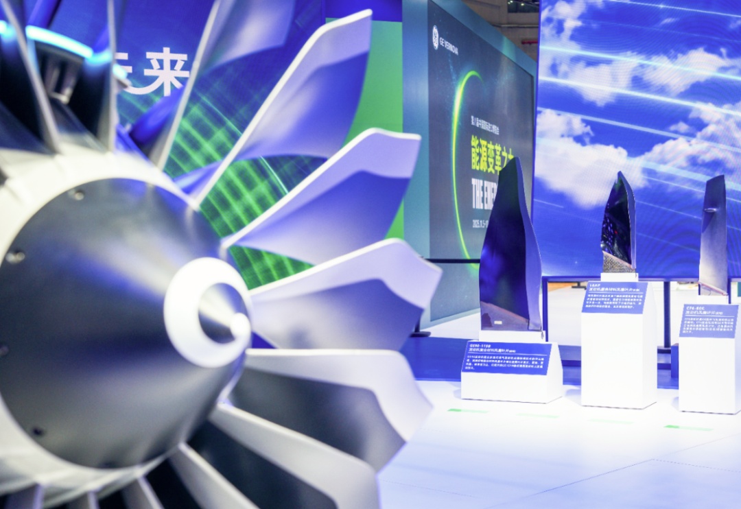 GE航空航天销售运营总监于洋介绍,“最右边的CF6-80C叶片是‘资历最老’的,它曾经历过鸟击损伤,但经过我们的修复,最终重返蓝天;位于左侧的GE90-115B叶片,运用碳纤维技术,使得叶片更大、更轻、更强。”位于中间C位的LEAP发动机复合材料叶片采用了最新一代碳纤维编织技术,比金属轻一半,更强韧,还免去了定期维护的麻烦。“左右两片风扇,正是它技术演进的前身。”于洋的语气里满是自豪,“这三片风扇并列展示,正是我们技术不断突破、持续服务中国民航的生动见证。”