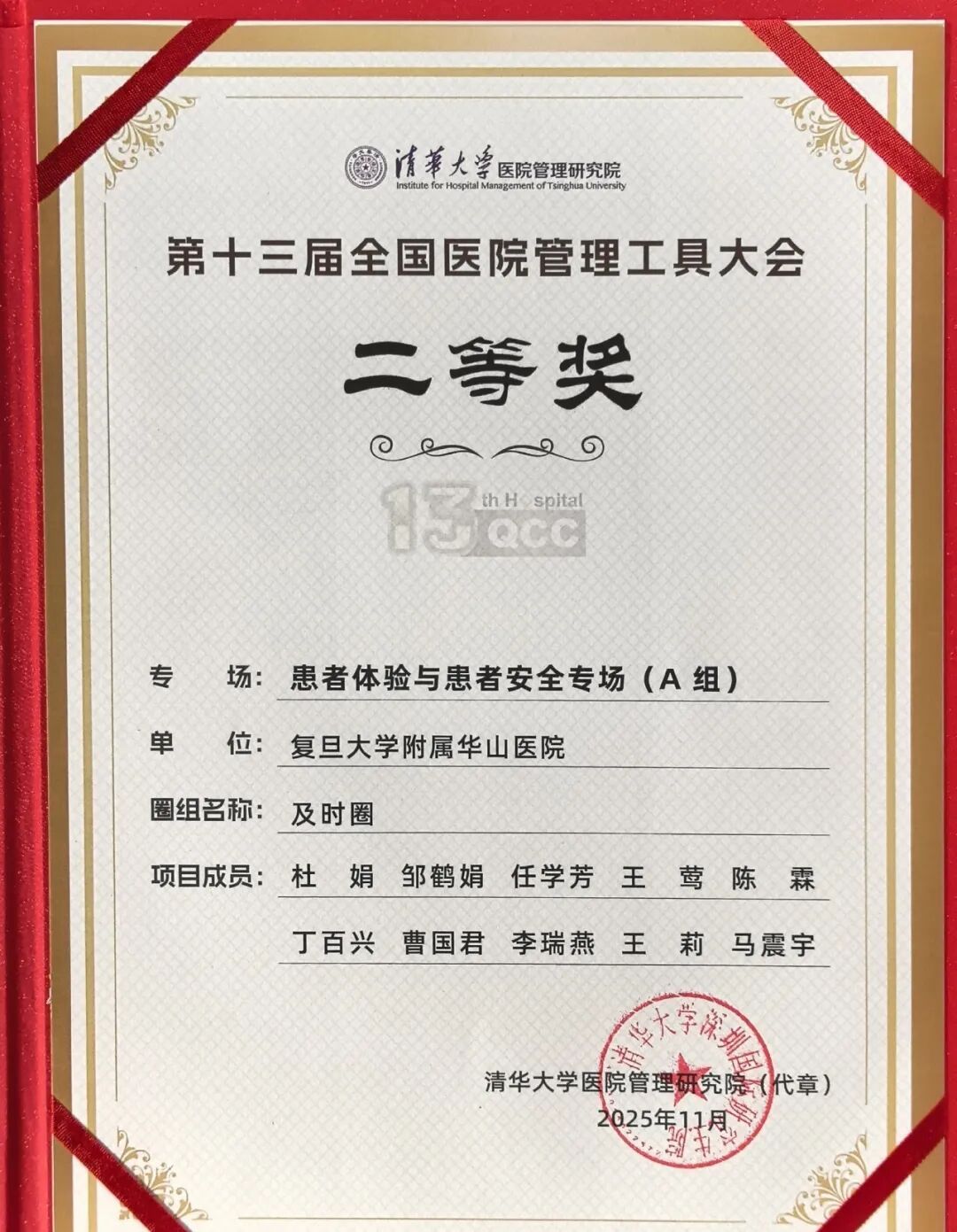 该项目由华山医院浦东院区院长、项目辅导员王惠英教授,华山医院浦东院区副院长、项目组长杜娟教授,项目副组长质控办邹鹤娟及浦东院区管理、医疗、护理人员等共同组成跨学科团队。团队以提高医疗服务安全和品质为核心目标,经历多轮医疗管理工具专题培训会及两轮质量改进项目专家点评会后,在十余个候选项目中获推参赛。项目在上海市品管圈大赛中荣获三等奖,在此次全国比赛中获得二等奖。