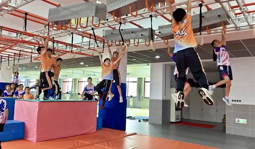 如今,跑酷社团已发展为4支队伍,近80名中小学生参与,其中6名学生已成功通关42米空中“马拉松”赛道。孩子们在训练中突破胆怯、主动加练,多名学生在全国及上海市跑酷赛事、国民体能赛中斩获荣誉。