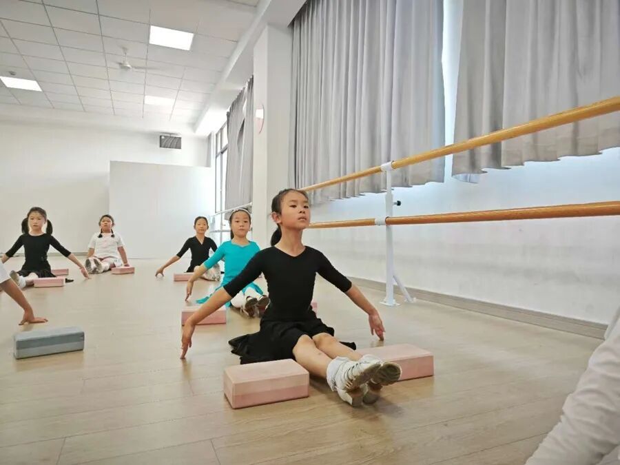 位于新江湾城的同济附校有着得天独厚的场地优势:新学校有大操场、体育馆、网球场,还把一整层楼打通改造成了活动区,建设专属训练场馆。同济附校体育总负责人程延风介绍说,学校的周末训练营“年中无休”,涵盖体育舞蹈、腰旗橄榄球、轮滑冰球、击剑、网球、跑酷等14个大项,共有41个组别。训练时间除了周六一整天外,周中每天下午四点后的课后服务时间,各场馆也同步开展训练,学生每周至少参与2-3次专业训练。
