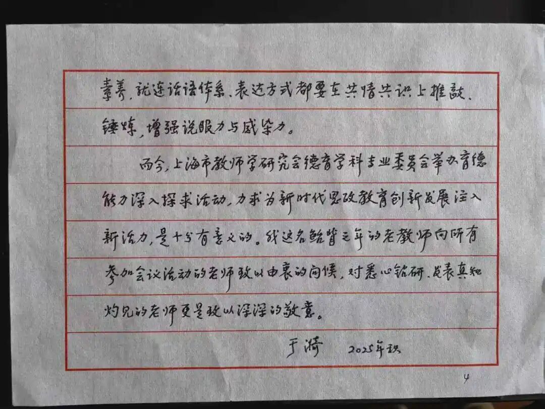 于漪老师这封亲笔信不仅是老教育人对后辈的叮咛,更精准契合静安区弘扬教育家精神的实践方向。