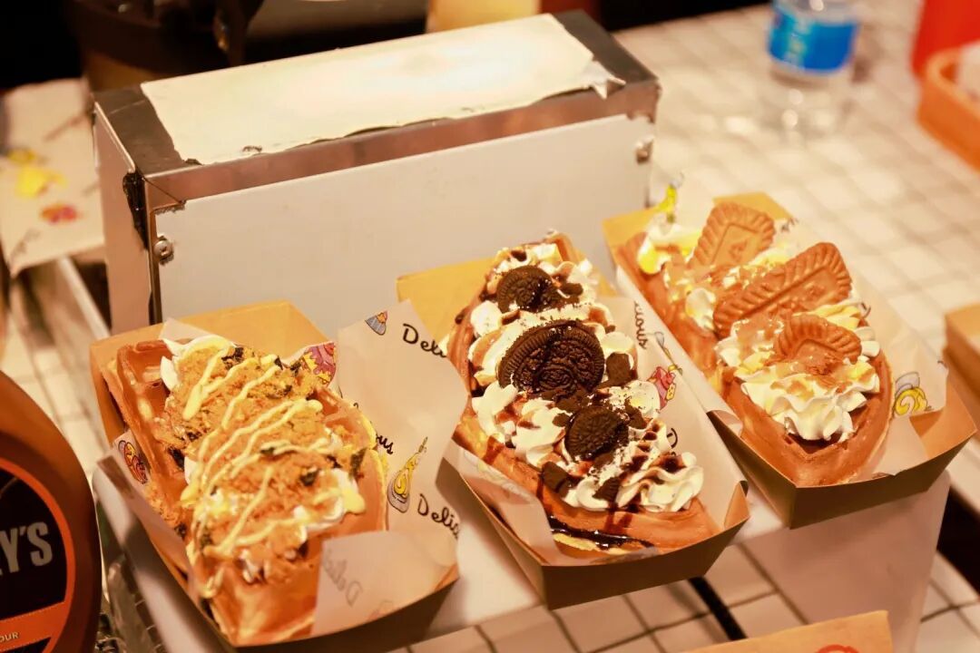 现煎的牛肉汉堡在铁板上滋滋作响,裹满酱汁的烤肠油润发亮,鸡蛋仔飘出浓郁的奶香,软糯的鱿鱼年糕在铁板上翻炒,还有热气腾腾的烤冷面、爆浆豆腐、滋滋冒油的煎包……在“不负‘食’光”区,十余辆风格各异的网红餐车沿街排开,组成了一条流动的美食风景线。