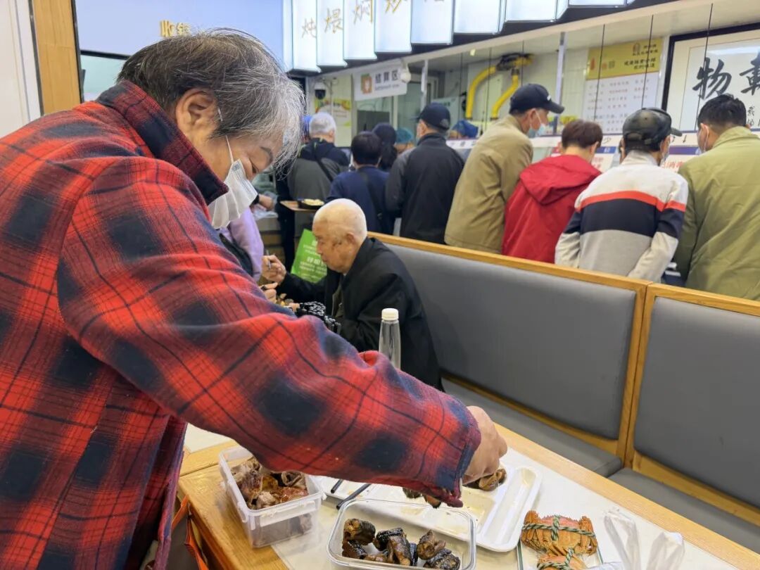 当天,当“宁宁”走进新泾镇社区长者食堂,窗口前阿姨爷叔已排起了长队。餐厅负责人介绍,最近上新的秋冬菜品得到了长者们的喜爱,围绕 “滋补” 与 “经典” 两大关键词,既有当季限定的滋补食材,也有长者喜爱的传统家常菜,可满足不同人群的口味。