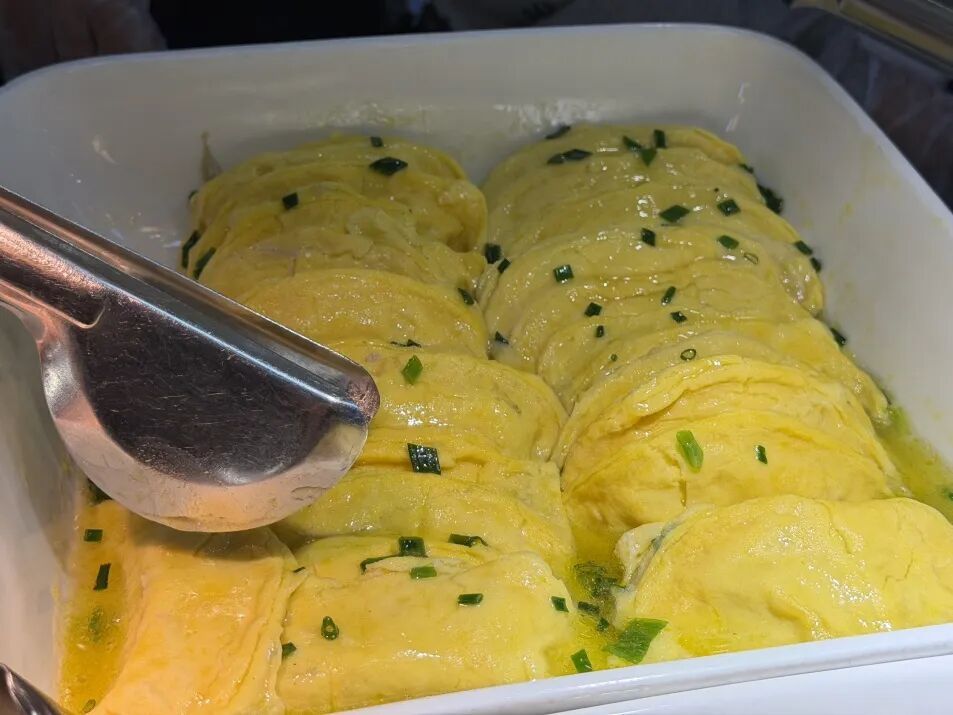 新增的大头虾肉质饱满紧实,鲜味十足;经典家常菜蛋饺持续供应,金黄的蛋皮包裹着鲜嫩的肉馅,一口一个,唤起不少长者的怀旧情结。