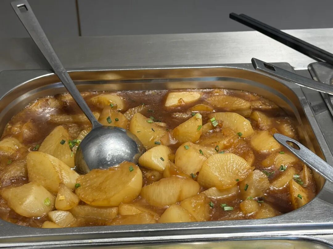 白炖扬州狮子头是食堂的经典招牌,此次对其口感进行了改良,相较于以往更显软糯鲜香,成为不少长者的必点菜品。糟熘鱼片作为秋冬主推菜,鱼片鲜嫩无刺,入口即化。